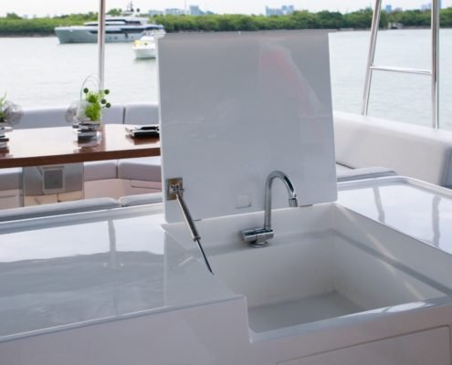 - Refined Design: Enjoy the bright, airy main deck saloon, seamlessly connected to a spacious, shaded aft deck for alfresco dining. The upper deck features a comfortable lounge with panoramic views.